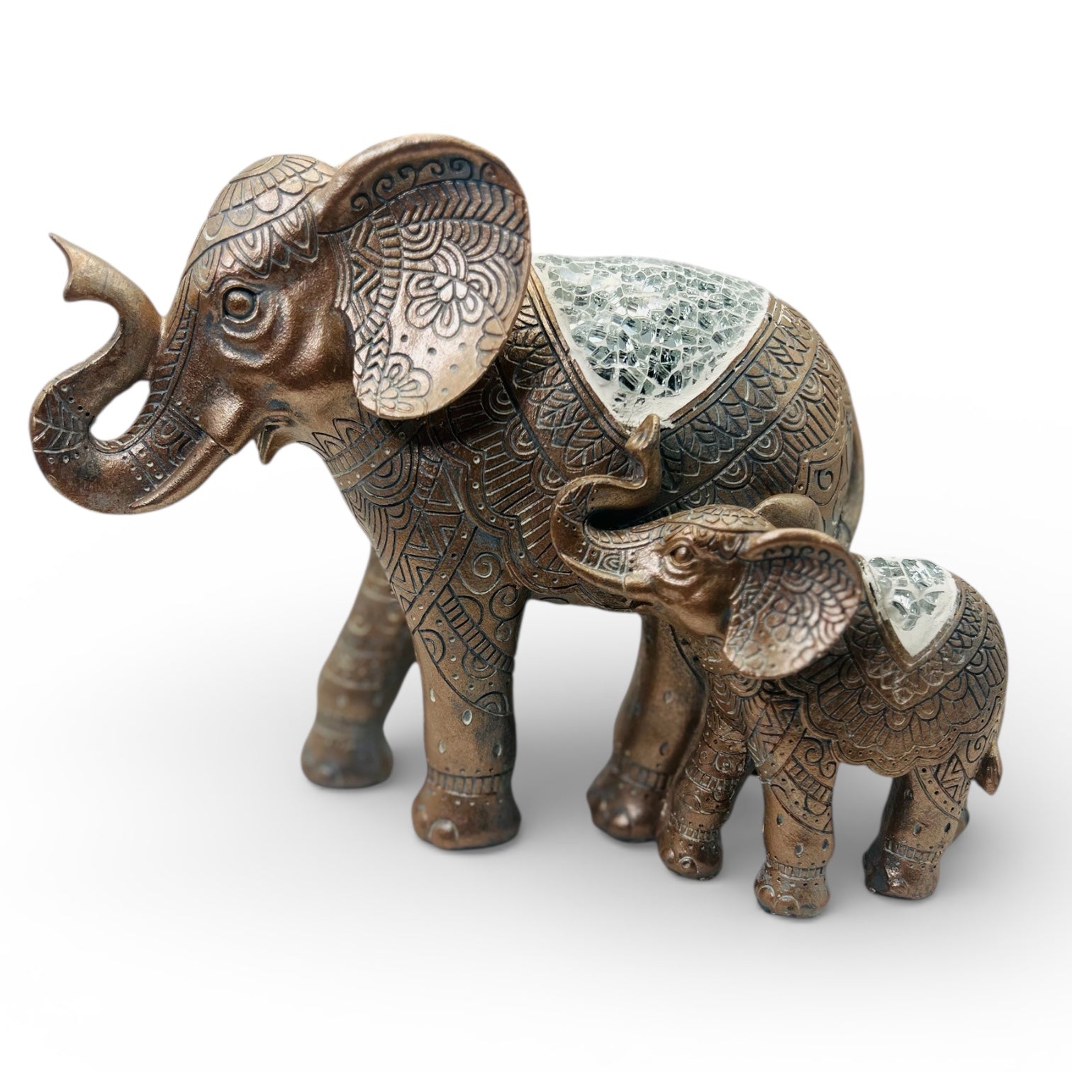 Elephants are a symbol of strength, wisdom and protection. This beautiful figurine featuring mother and baby elephant, is sure to illuminate your special space and add delightful ambience, good energy and personality.